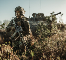 Soldaat PantserinfanterieStel je voor: Het zwaar bewapende pantservoertuig CV90 met 3 bemanningsleden en 7...