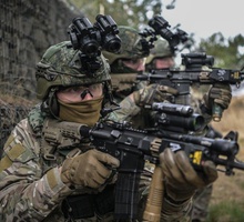 Soldaat Gemotoriseerde InfanterieStel je voor: Het pantser wielvoertuig BOXER met bestuurder, boordschutter en zes...