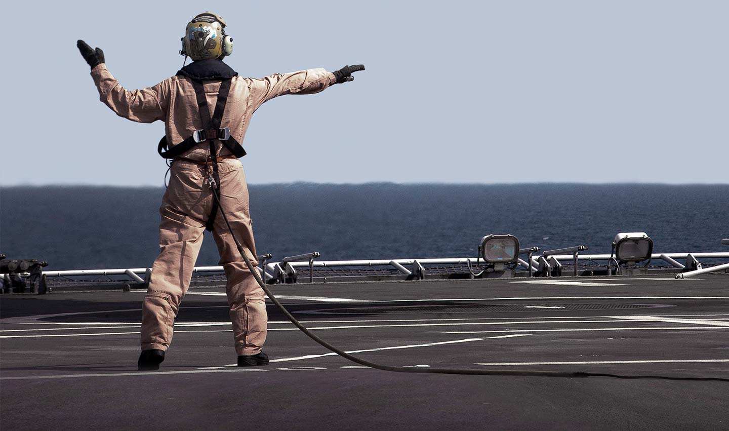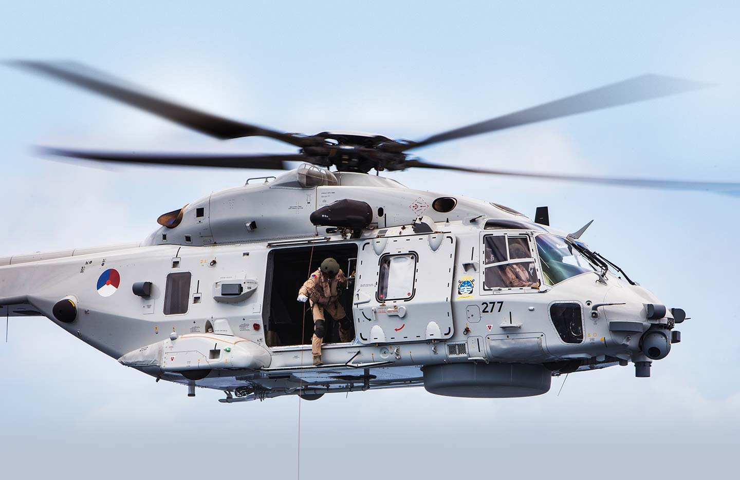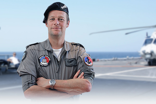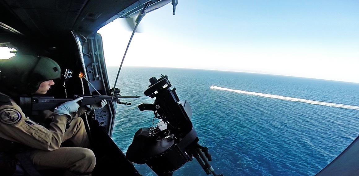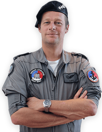 Of lees de tekst“Begin 2014 mocht ik op uitzending naar Somalië. Vanaf de Zr. Ms. Johan de Witt stegen we dagelijks op met de NH-90, waarin de crew bestond uit de vlieger, een tactisch officier, een rescue operator en ikzelf als sensor operator. De vlieger bestuurt de heli en is verantwoordelijk voor het veilig in de lucht houden van het toestel. De tactisch officier, of Tacco zoals wij zeggen, is de mission commander van de NH90 en bepaalt de tactische inzet van de helikopter. Hij heeft ook de rol van co-piloot. De rescue operator is de disabling fire schutter, verzorgt de eerste hulp rondom de heli en is degene die aan de lijn hangt als we mensen uit het water halen. De Sensor Operator ten slotte, mijn rol, bedient alle systemen en sensoren in de cabine, maar ook het boordwapen en de hoist.”